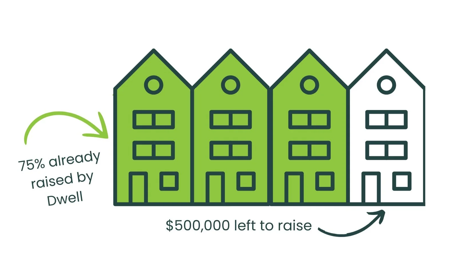 Like all community housing providers, Dwell has to raise 30% of the cost of a project before we can unlock financing for the remaining 70% and start building the development. We are well on our way to our funding goal, but need to raise an additional $500,000 to make this happen.